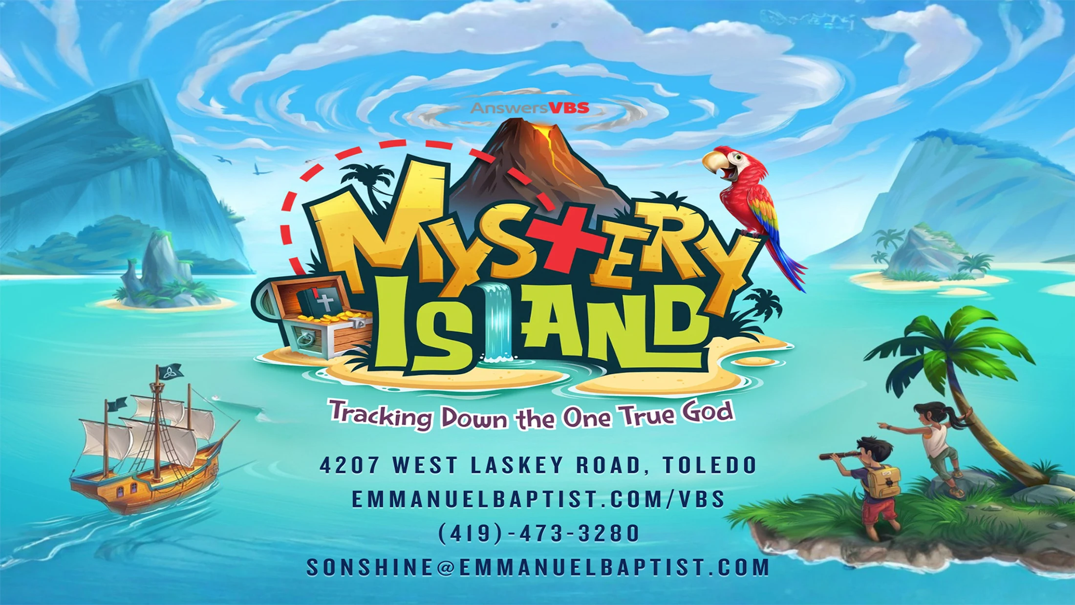 To kick of our summer of fun for kids, the Sonshine Free Family Carnival will take place on June 13th from 11am-3pm. Then come back the next day for Sonshine VBS as we take a trip to Mystery Island to track down the One True God. Join us each night from 6:30-8:30 PM beginning on June 14th and ending on June 18th for Sonshine VBS. Sign up using the button below to let us know that your little one is coming.
