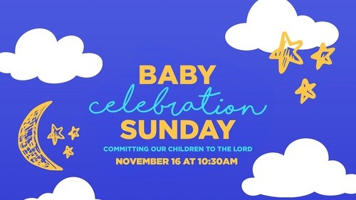 We invite all families who have recently welcomed a new baby to join us for a special Baby Celebration! During this meaningful event, families will gather at the front for a time of prayer as we celebrate the blessing of your growing family. If you haven't yet participated in this celebration and would like to take part, please contact Lauri Swisher by November 12.